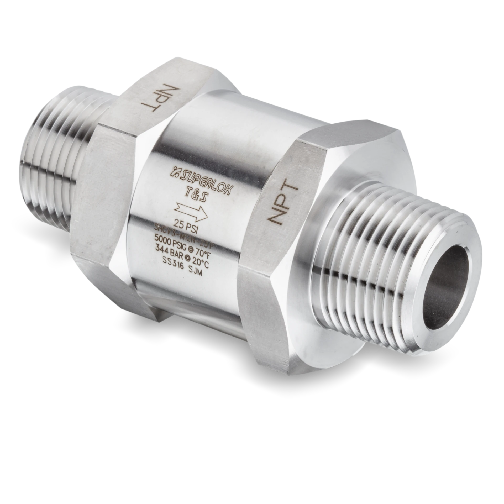 - Model: SHCV2-S-6-1/3P (3/8" tube check valve, 316 stainless steel)