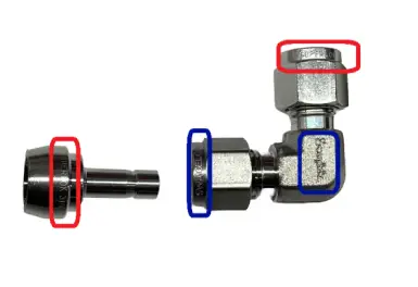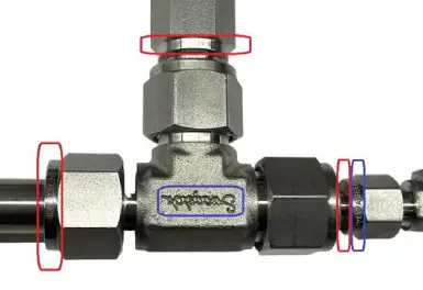 In the reverse scenario, the 1/4" nut & ferrules were replaced with Legacy Brand nut & ferrules on this Superlok needle valve creating another intermixed connection.