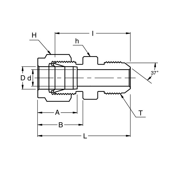 SAU 3/8 in. Tube Outside Diameter D x 3/8 in. Male Joint Industry Council (JIC) Union
