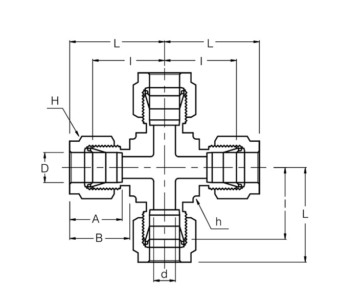 - Type: 4-Way Tube-to-Tube Compression Union